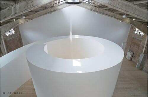进入北京常青画廊内“升华”装置的参观者,从一个隐蔽矮小的门开始通过一条巨型螺旋形黑暗狭窄的通道最后到达光亮的出口,那些我们所体验的幽闭恐惧感突然被升腾飘渺的揭示所否定了。