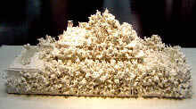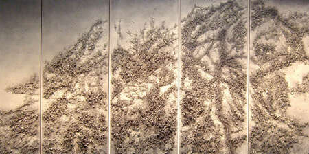 在马晗作品的语言方式中,传统山水中的勾勒、皴法,被铁丝、大米等现成品所替换。荆棘般的铁丝网、肉虫般蠕动的大米,再植入他所塑造的雕塑小人,混淆在一起而象征性地隐喻了我们在物欲横流中纠缠与被纠缠,欲挣脱又无法挣脱的尴尬情境和视觉样式。因此,如果从观念和语言、媒介材料上分析,我发现马晗是对传统文人画的一种利用的颠覆。表达了他对社会转型阶段人们对物质欲望疯狂的增值和精神无所皈依的伤痛。现实的魅惑与迷乱,以及他在这一过程中的处境和体验,导致了他对中国美术史上经典之作与当下人生的现实世俗新秩序的颠倒表述。