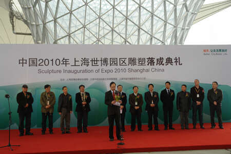 4月6日,上海世博会园区雕塑落成典礼在世博轴举行,标志着园区四大雕塑项目顺利完成建设。中国雕塑学会副会长孙振华、秘书长吴鹤林、江南广场雕塑项目现场负责人陈妍音及雕塑作品作者景育民、林岗等出席了落成典礼。