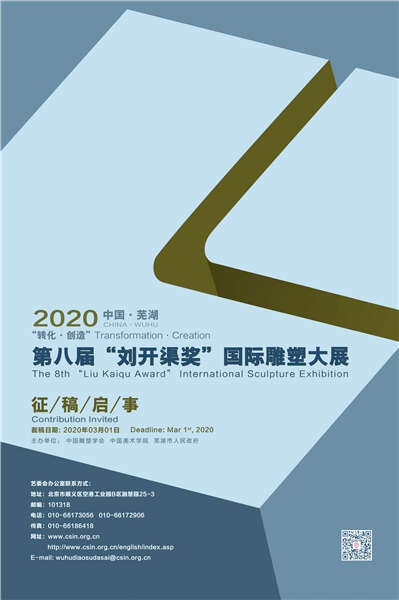 2020 China·Wuhu The 8th “Liu Kaiqu Award” International Sculpture Exhibition will continue the theme of “Transformation · Creation” and explore more possibilities of sculpture in its cultural mission.